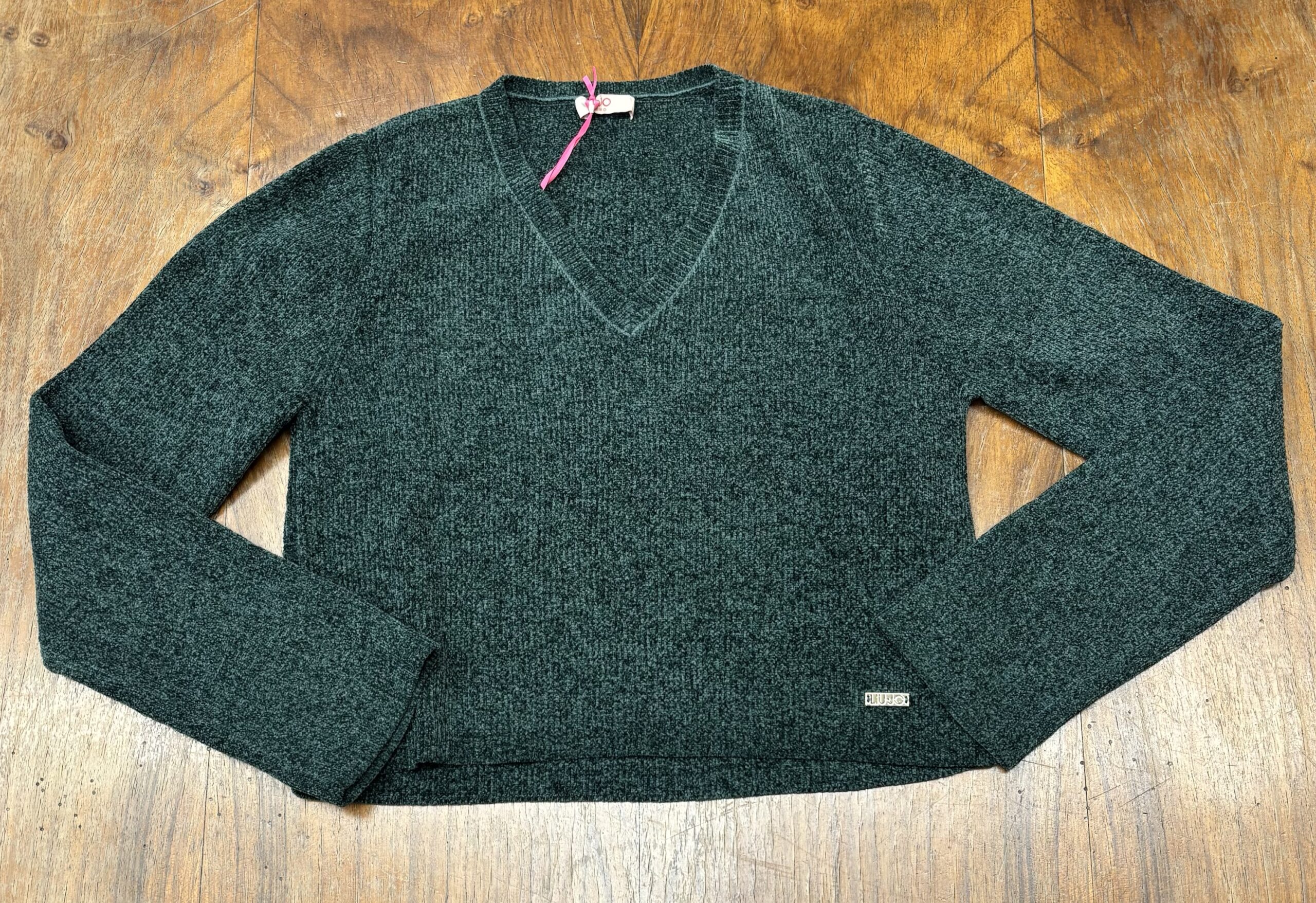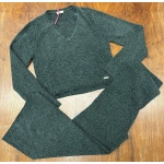 Completo Liu Jo in morbido tessuto invernale 2 pezzi: maglia con scollo a V e pantaloni con gamba larga ed elastico in vita.