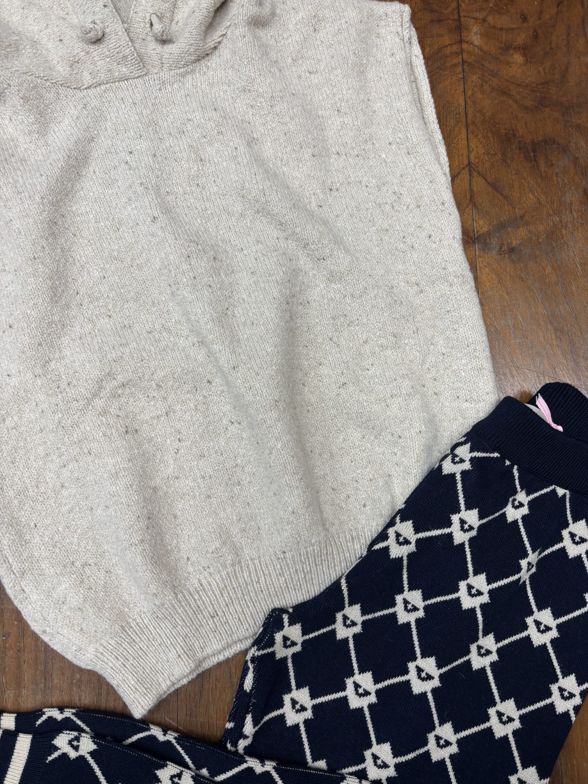 Completo Vicolo Girl in lana morbido 2 pezzi: felpa smanicata con cappuccio, pantaloni con polsini ed elastico in vita.