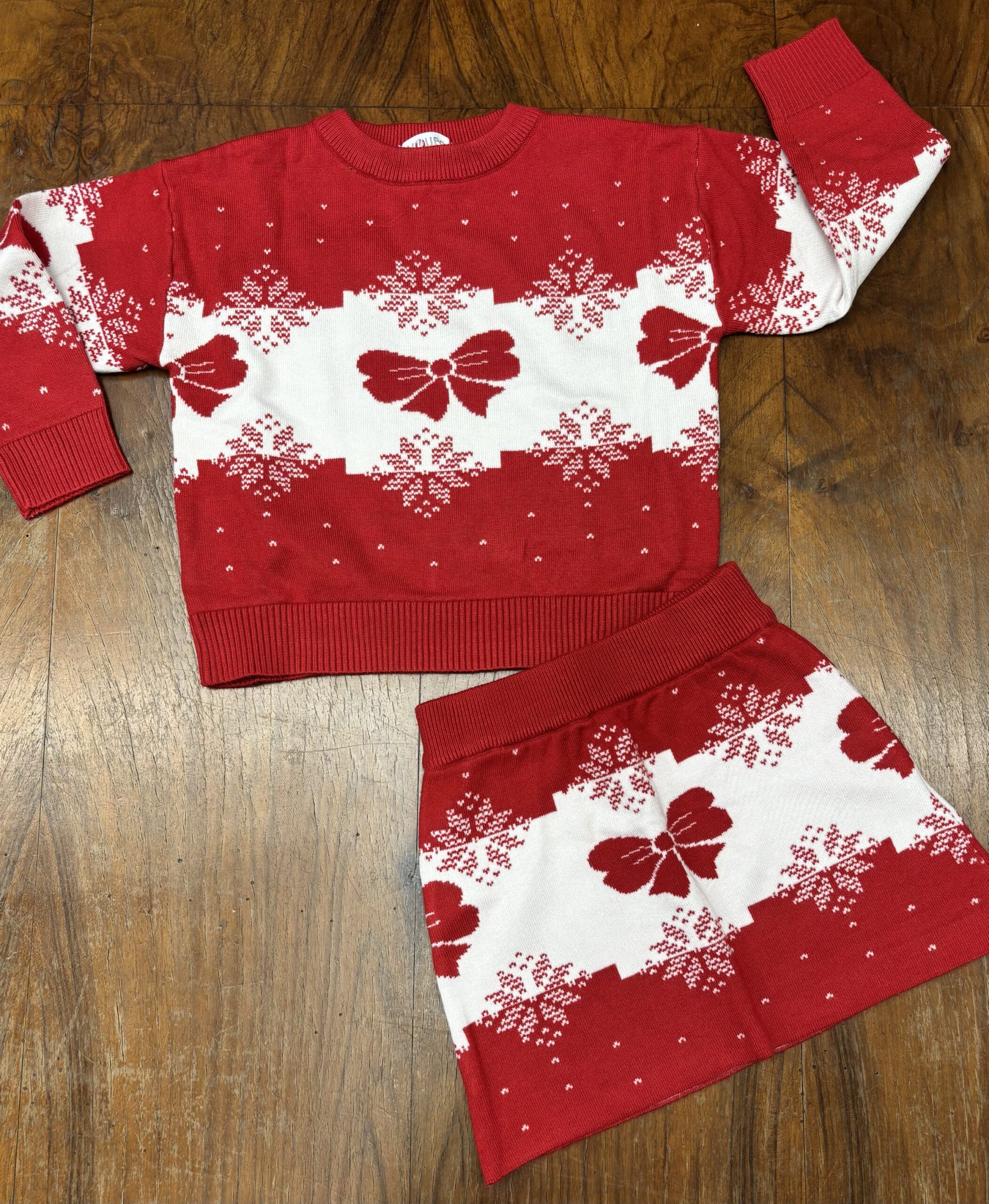 Completo natalizio Yours in tessuto morbido 2 pezzi: maglia a maniche lunghe e gonna con elastico in vita.
