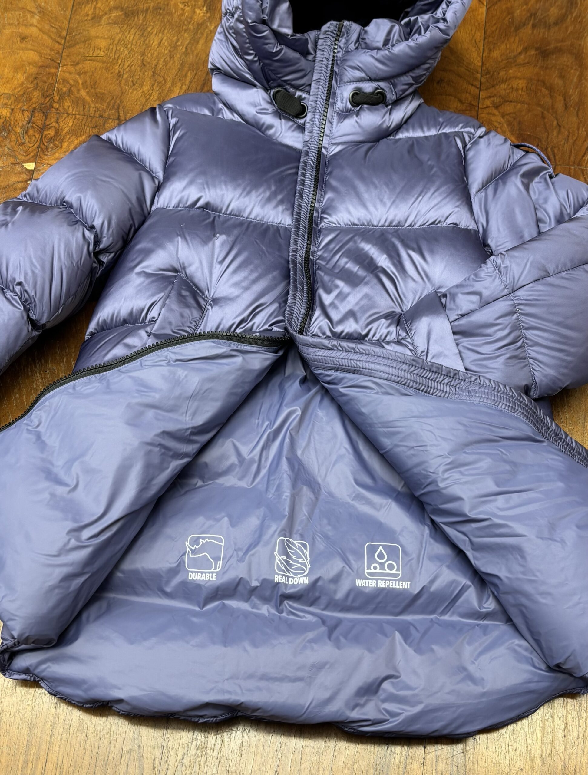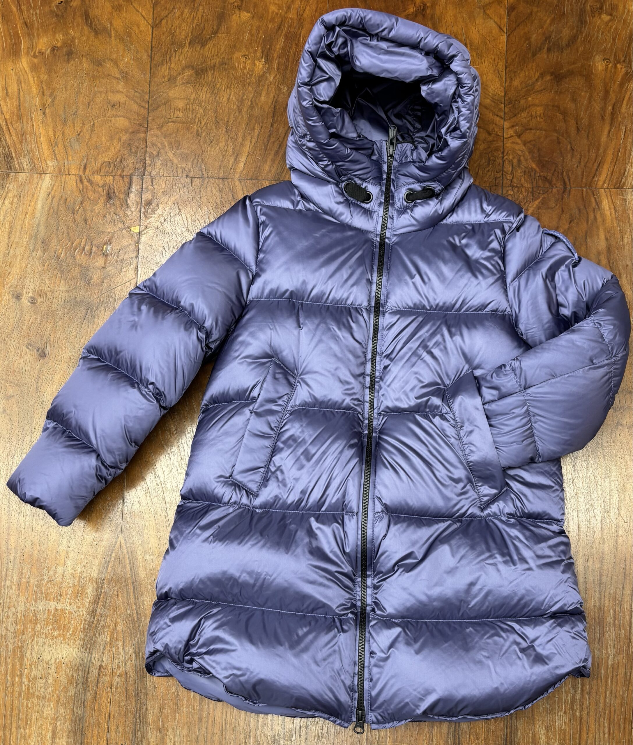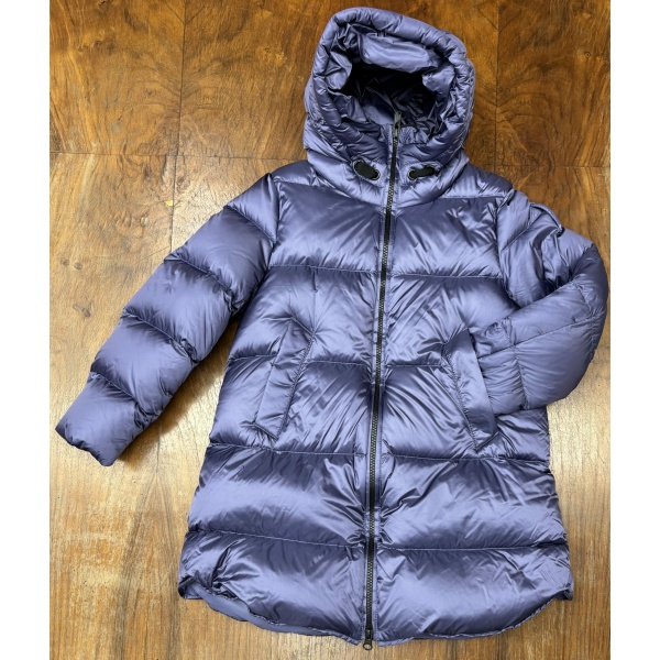 Giubbotto lungo Bomboogie invernale in vera piuma, impermeabile con cappuccio e tasche.