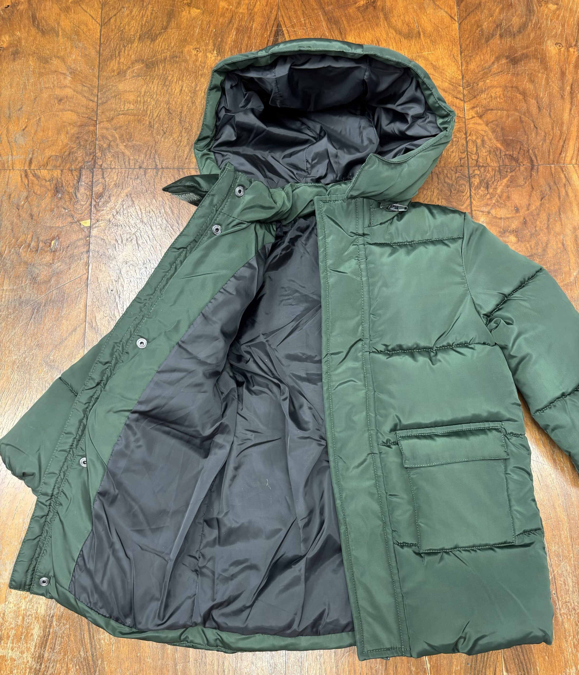 Giubbotto invernale Guess con cappuccio, tasche, e zip.