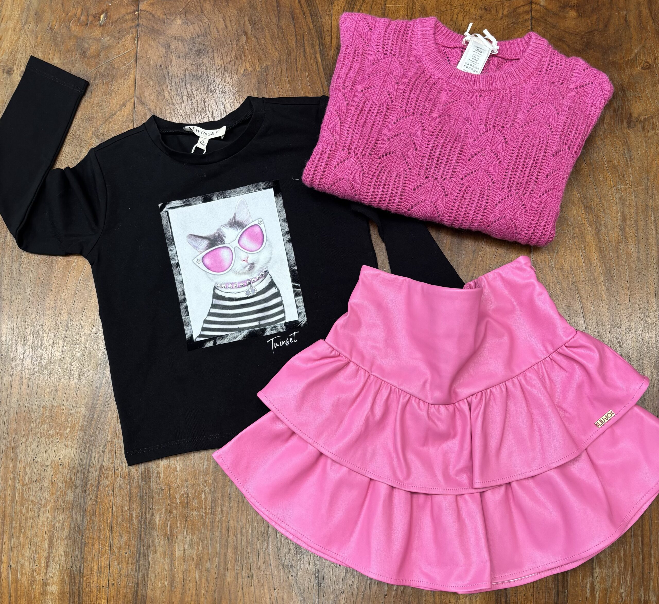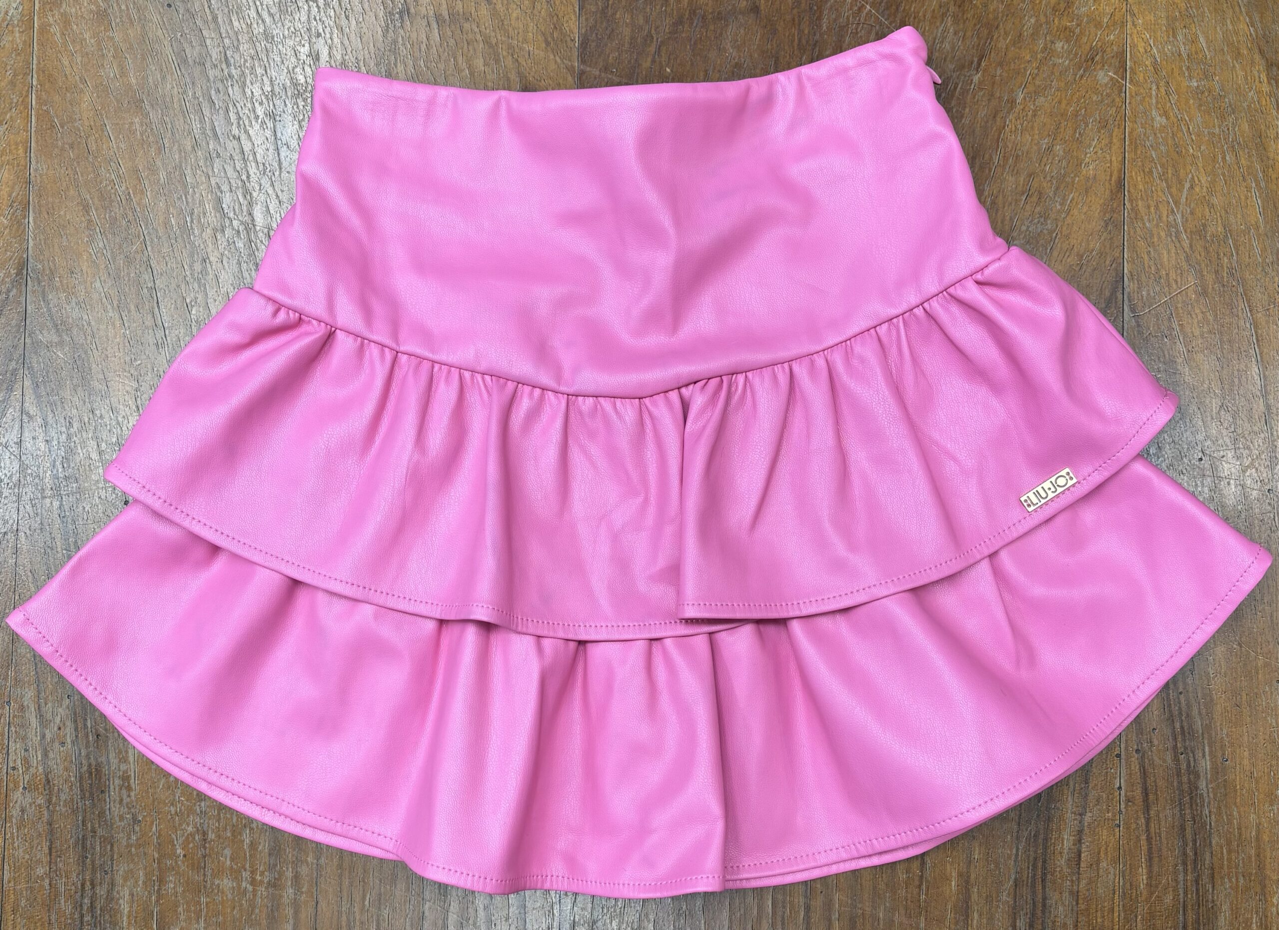 Gonna Liu Jo in eco pelle rosa con balze e apertura a zip laterale.