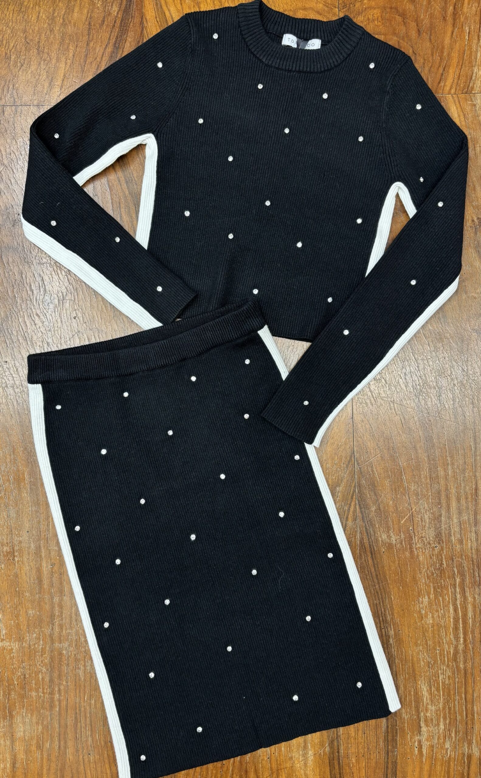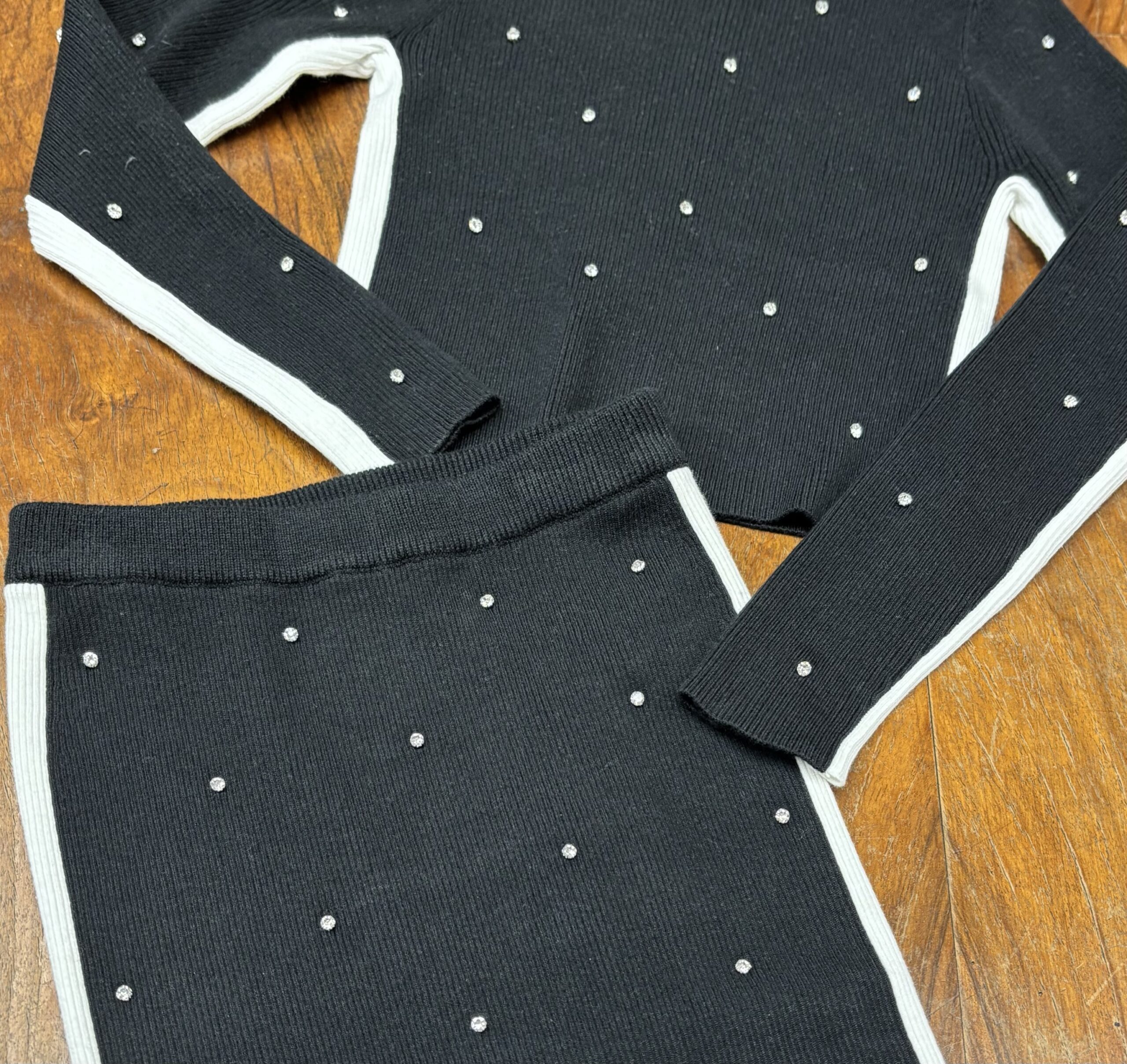Gonna To Be Too in tessuto elastico con mini spacco sul retro e punti luce applicati.
