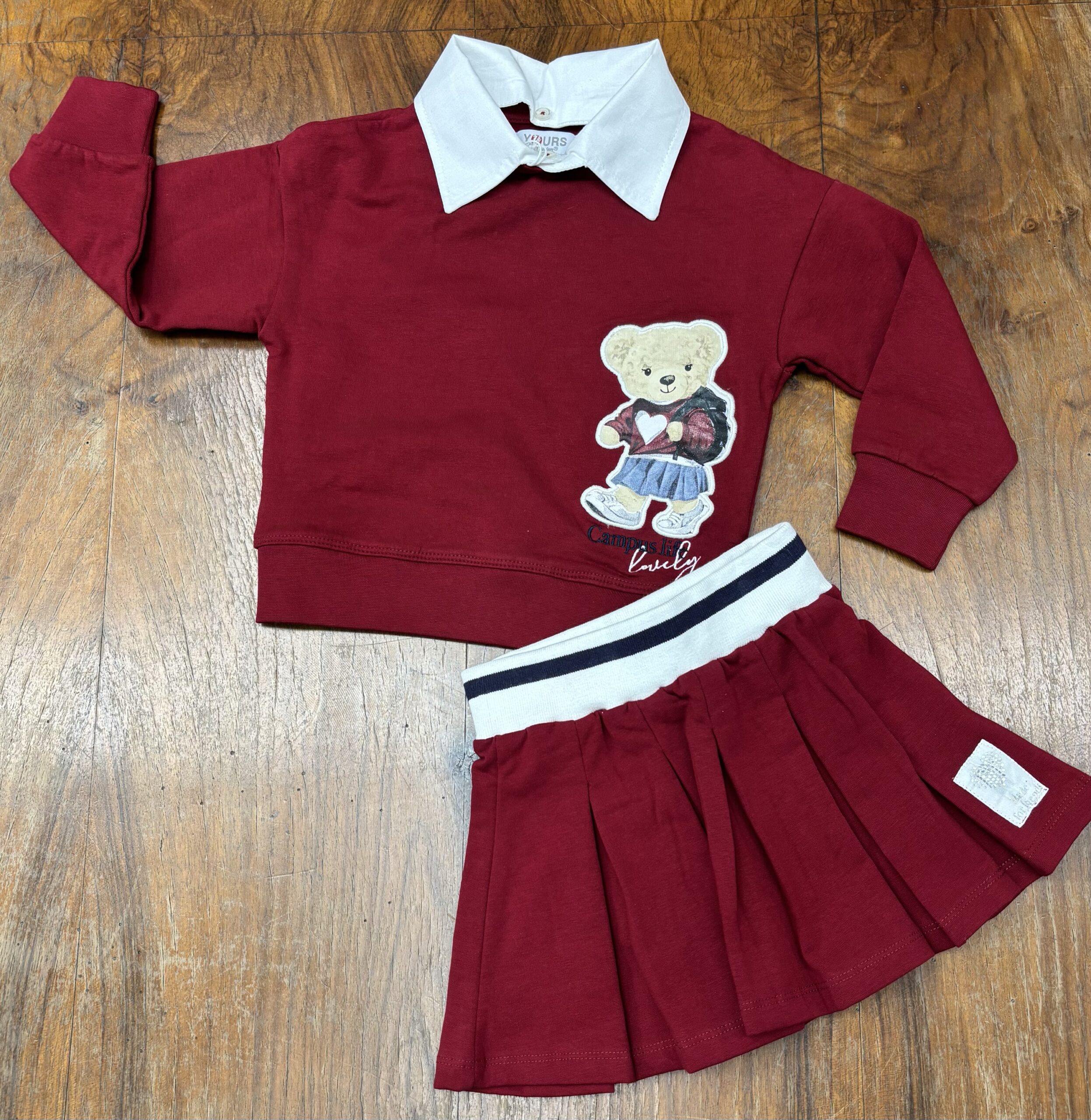 Gonna Yours in cotone felpato con balze ed elastico in vita.