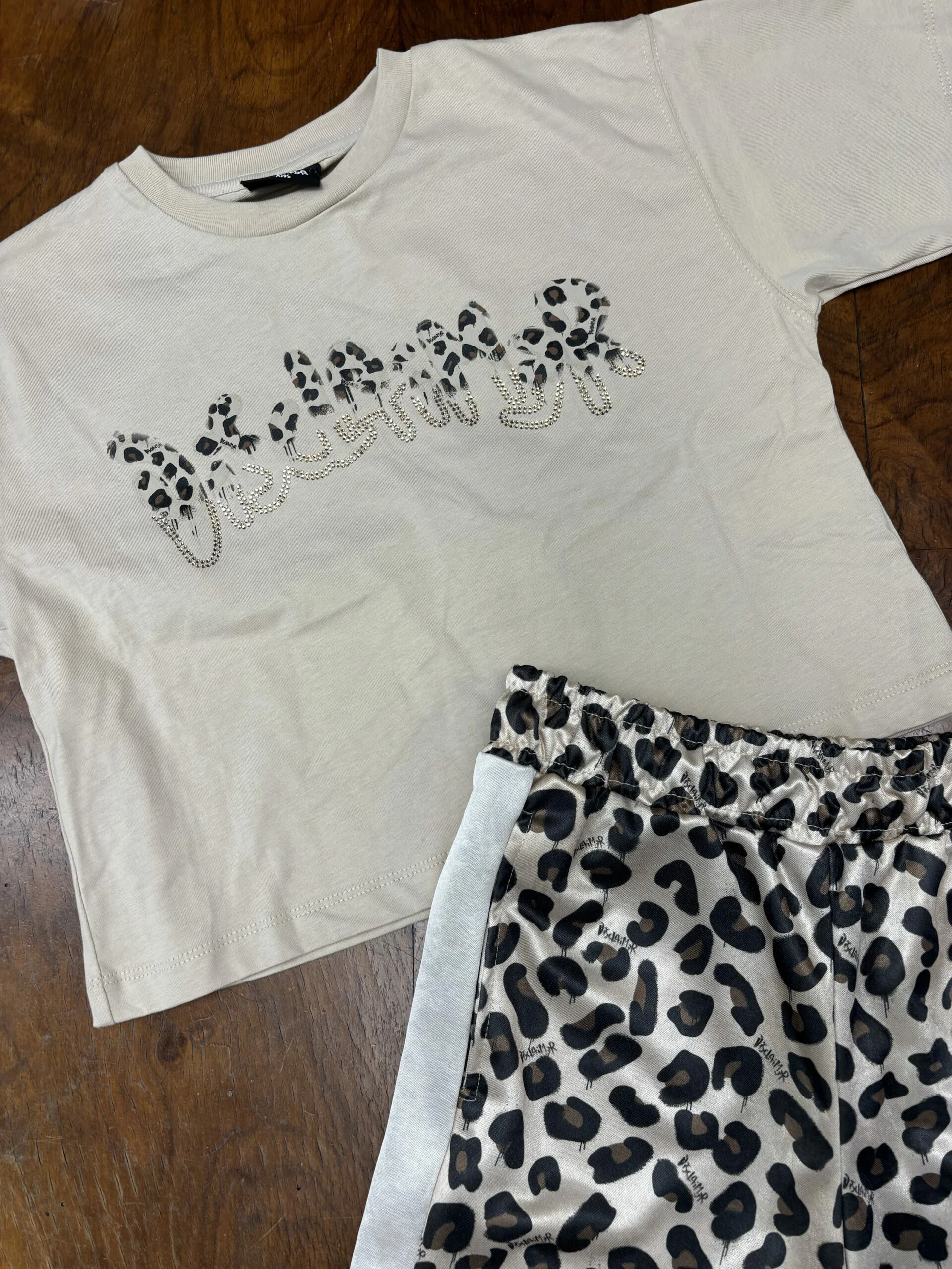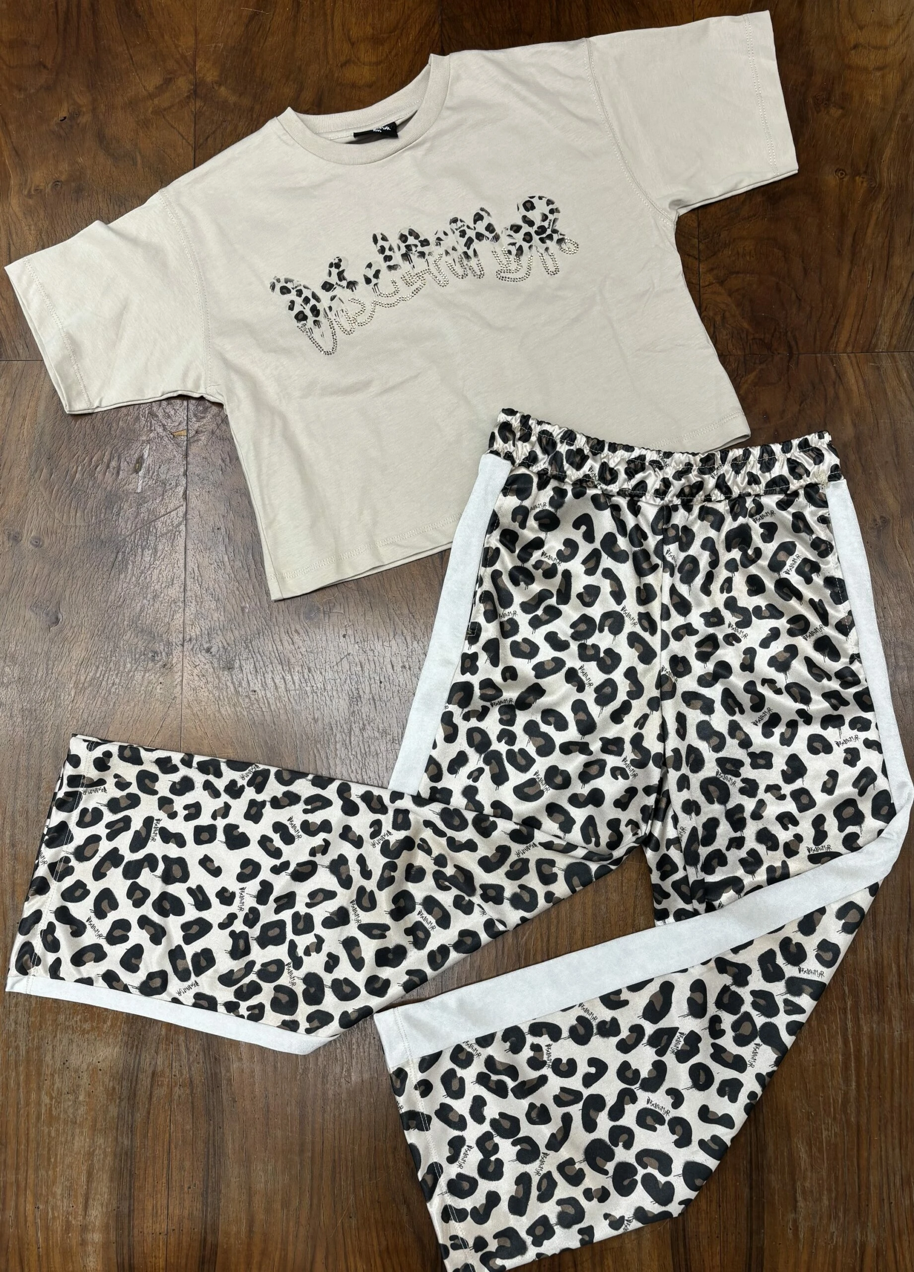 Pantaloni Disclaimer leopardato a gamba larga in tessuto morbido con elastico in vita. Made in Italy!