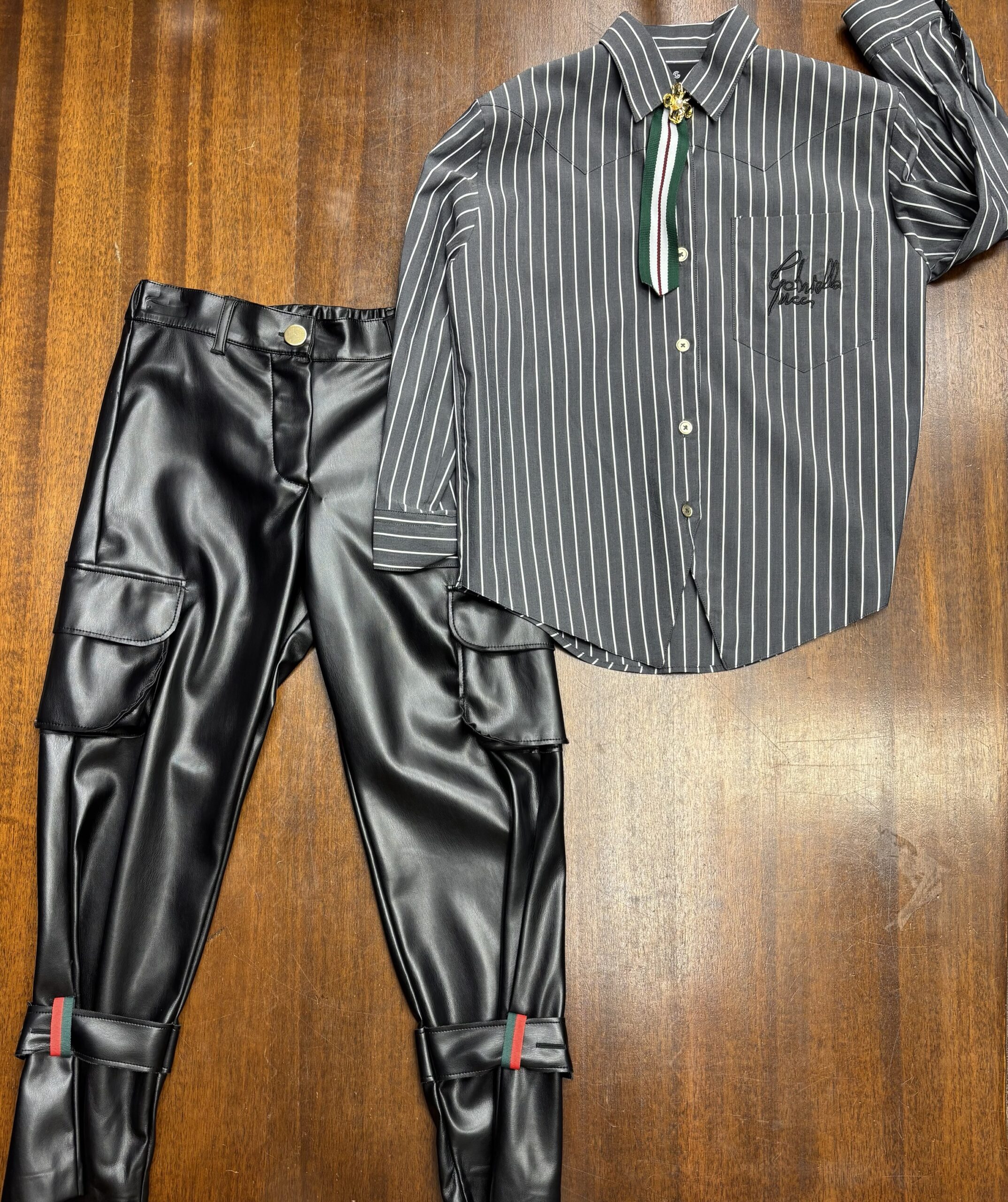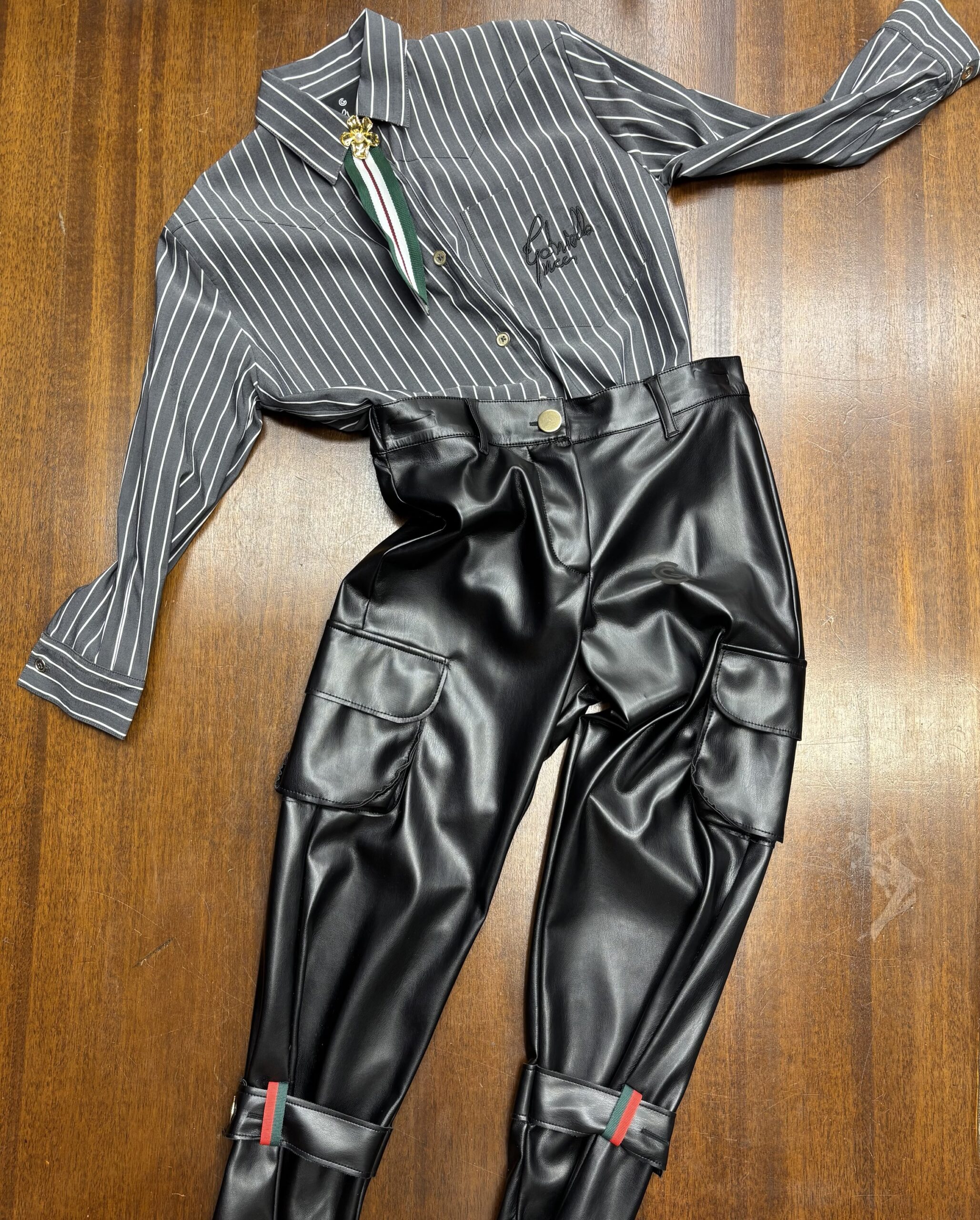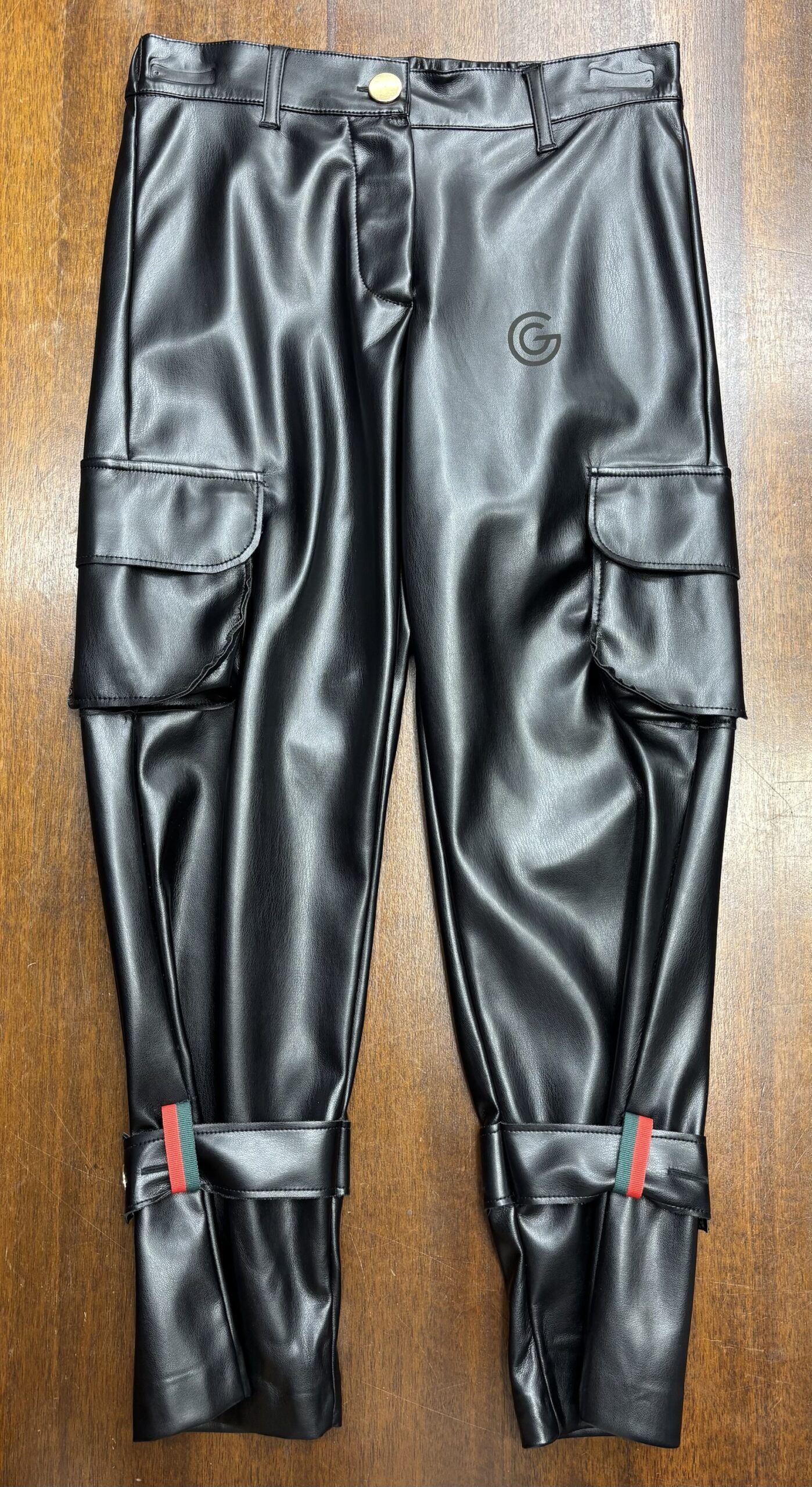 Pantaloni in ecopelle Gucci felpati all’interno con tasche laterali.